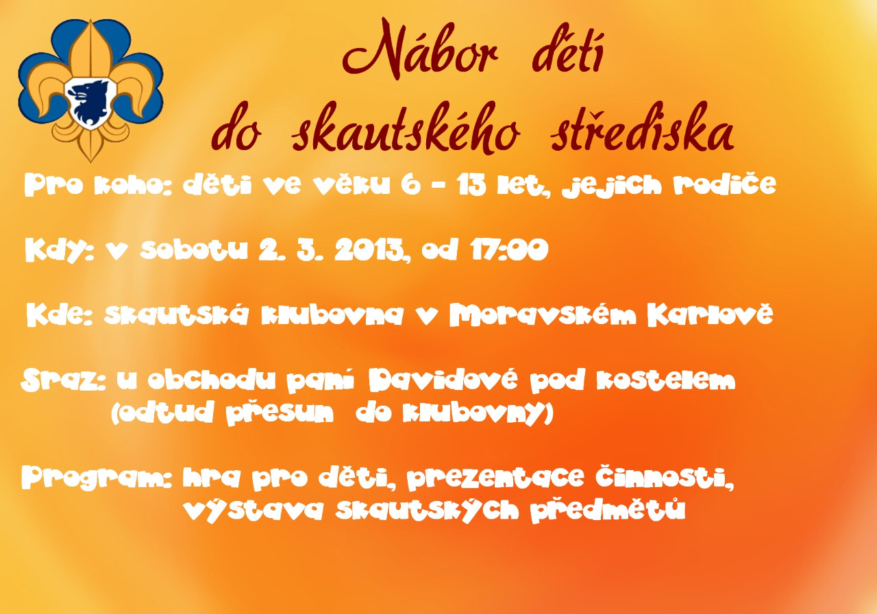 V sobotu se koná nábor k Sýkorkám. Pokud mají skautky zájem, mohou se přijít podívat a pomoci s programem pro děti či se podívat na klubovnu.